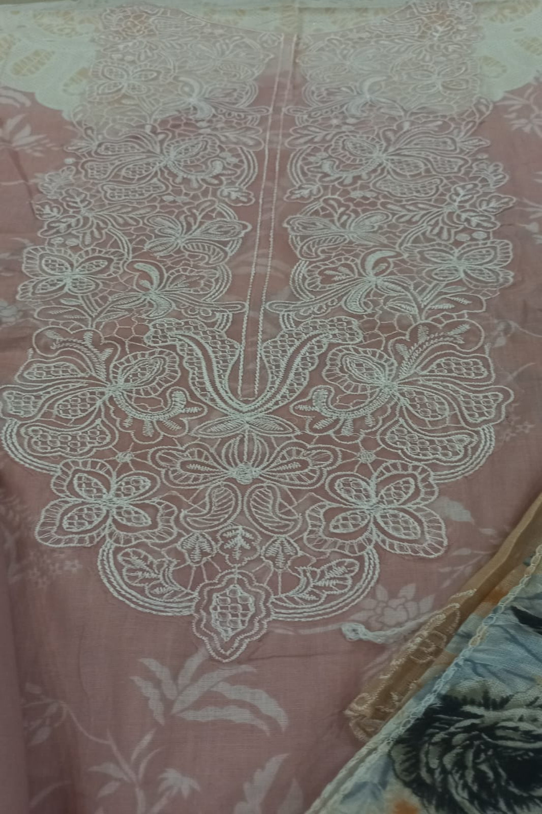 Lawn Cotton beautiful Embroidered collection with pure mal mal cut work dupatta.