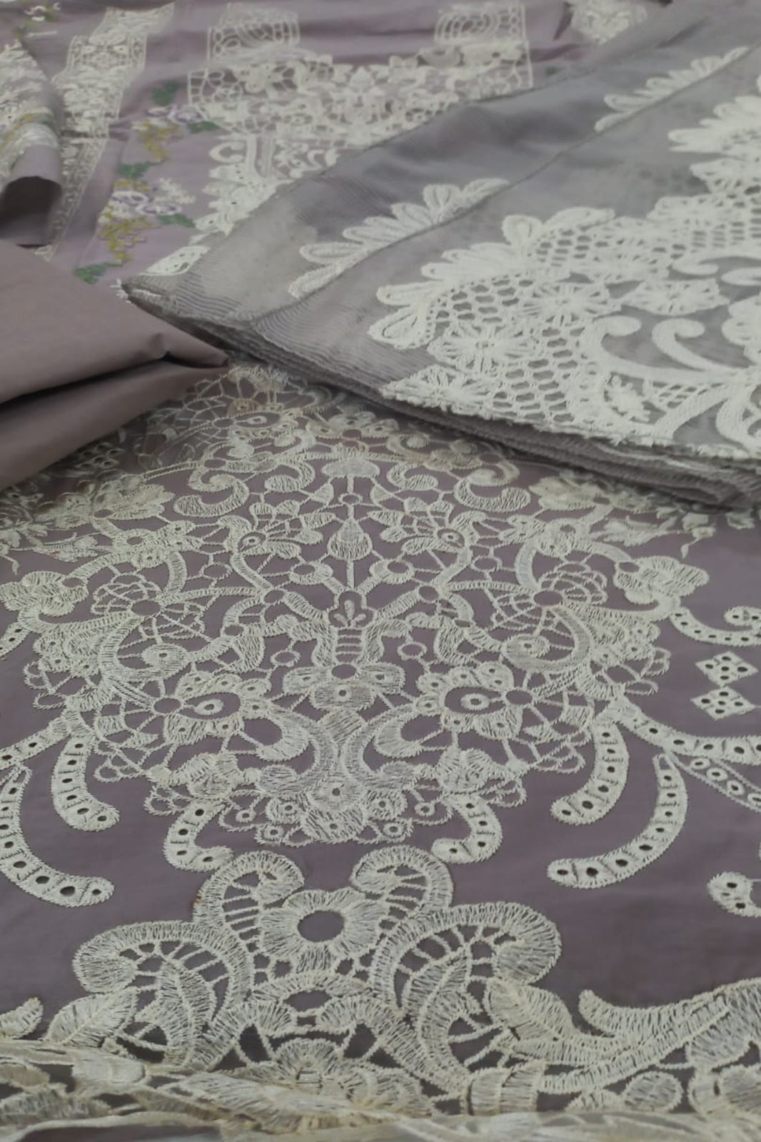 Top: Pure Cotton with heavy self-embroidery (semi-stitched)