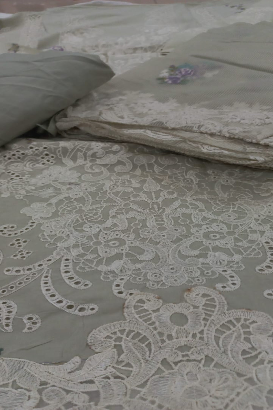 Top: Pure Cotton with heavy self-embroidery (semi-stitched)