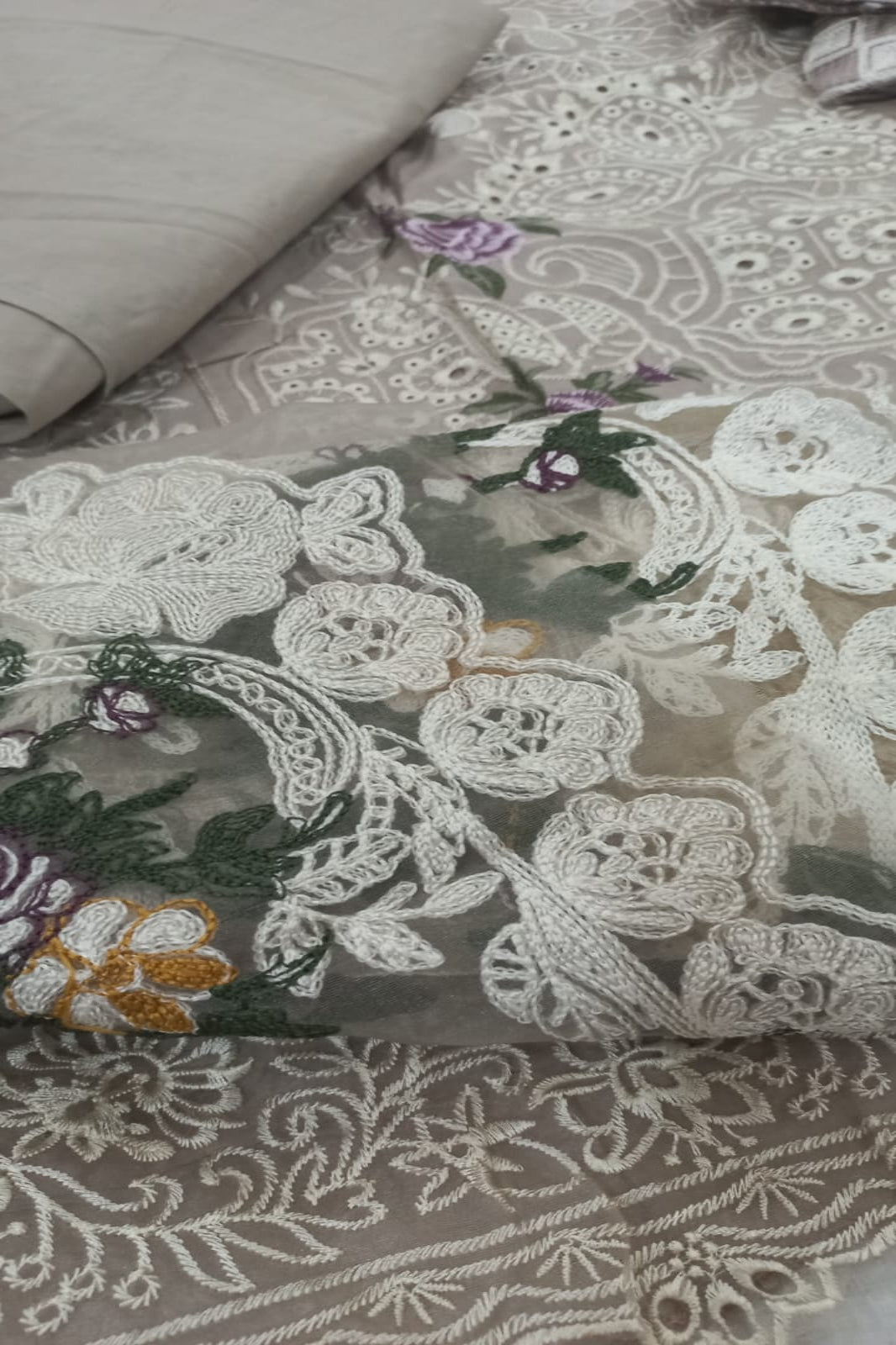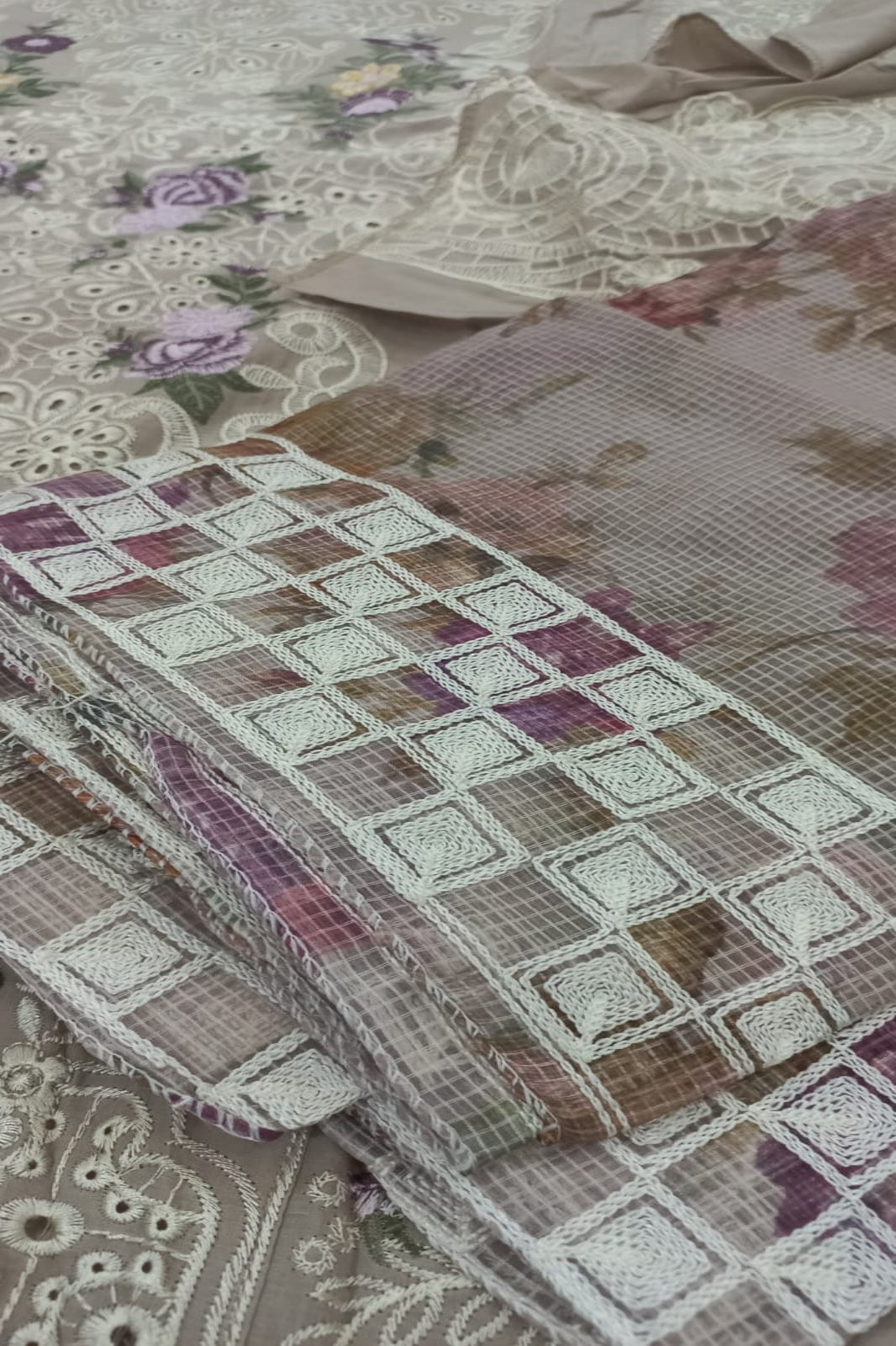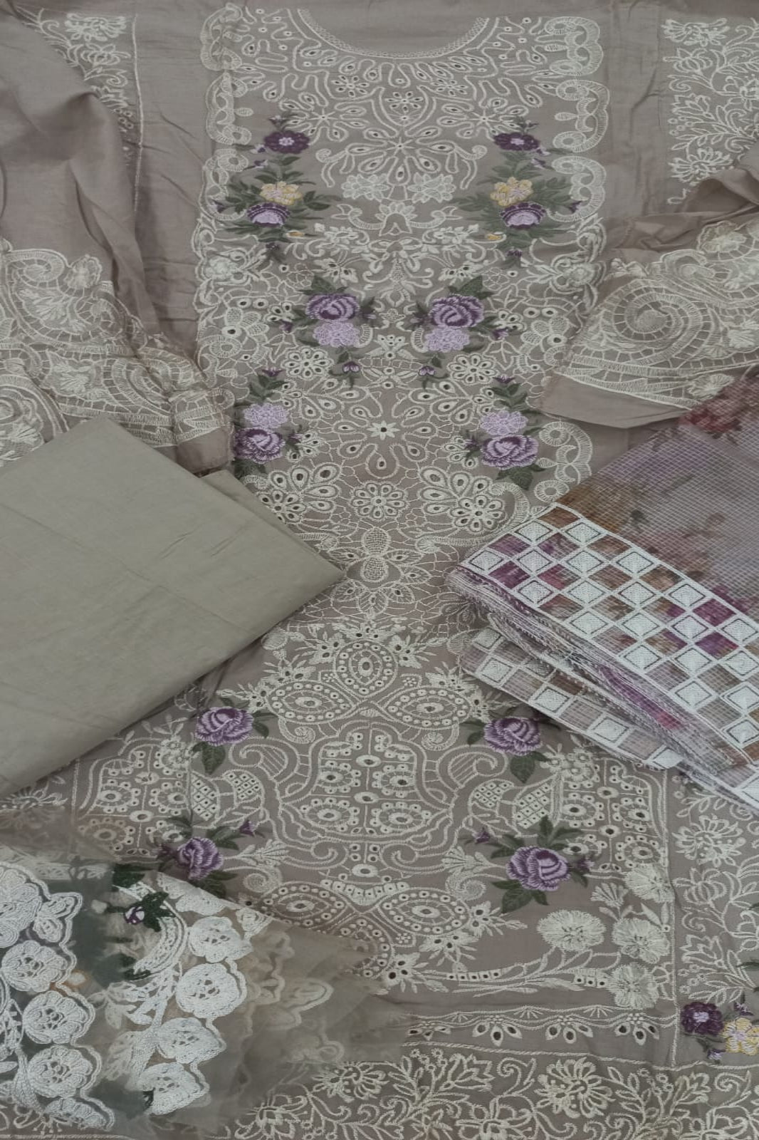 Top: Pure Cotton with heavy self-embroidery (semi-stitched)