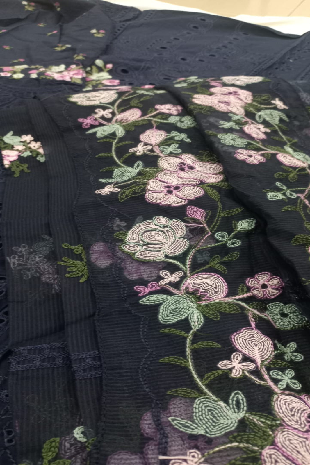 Top: Pure Cotton with heavy self-embroidery (semi-stitched)