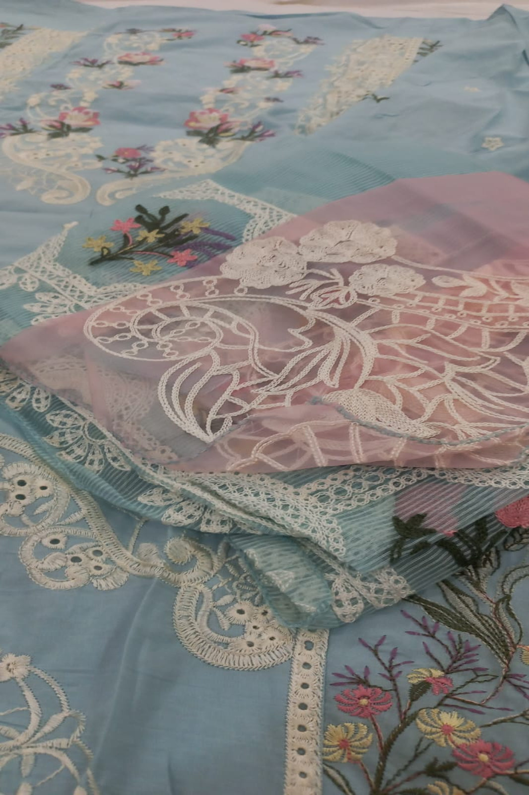 Top: Pure Cotton with heavy self-embroidery (semi-stitched)