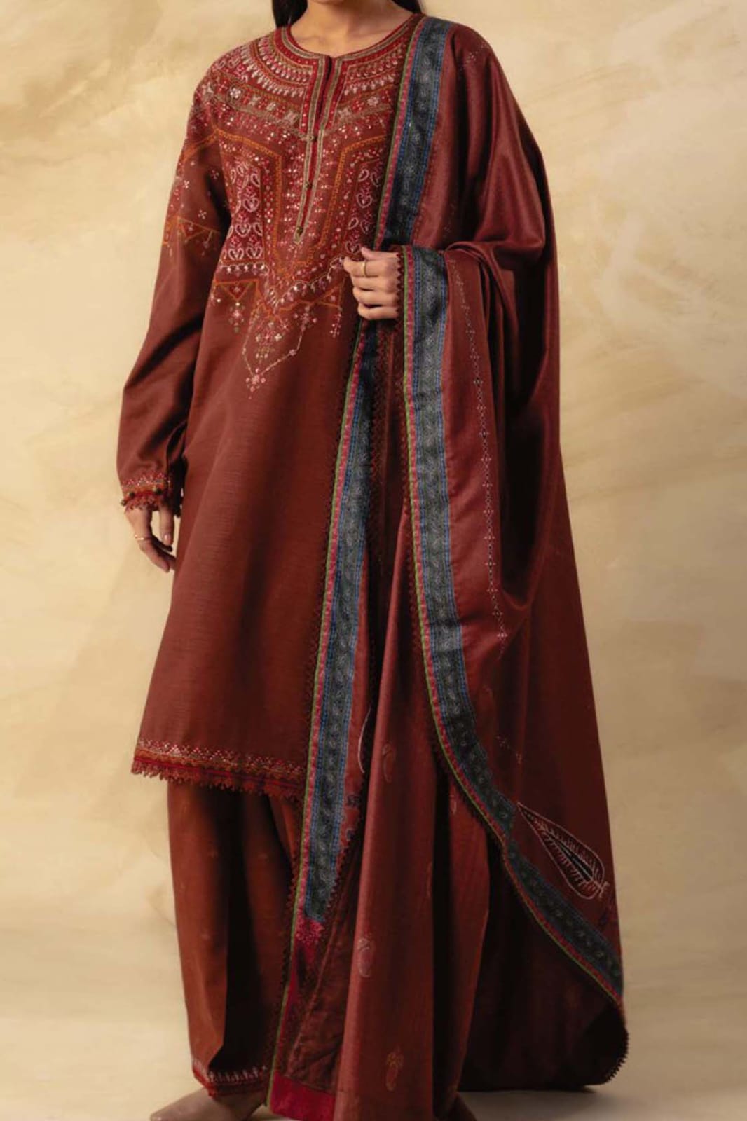 Embroidered Twill Shawl 2.75 Yards